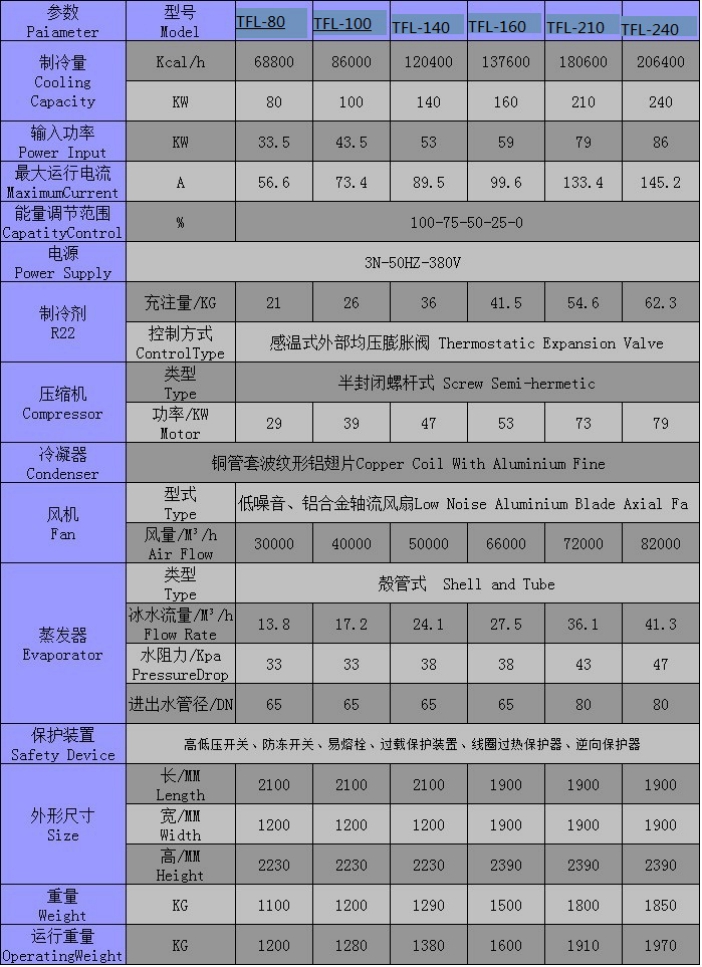 trolled ±2℃名義制冷量是依據冰水入口溫度12℃,出口溫度7℃,環境溫度35℃得出。